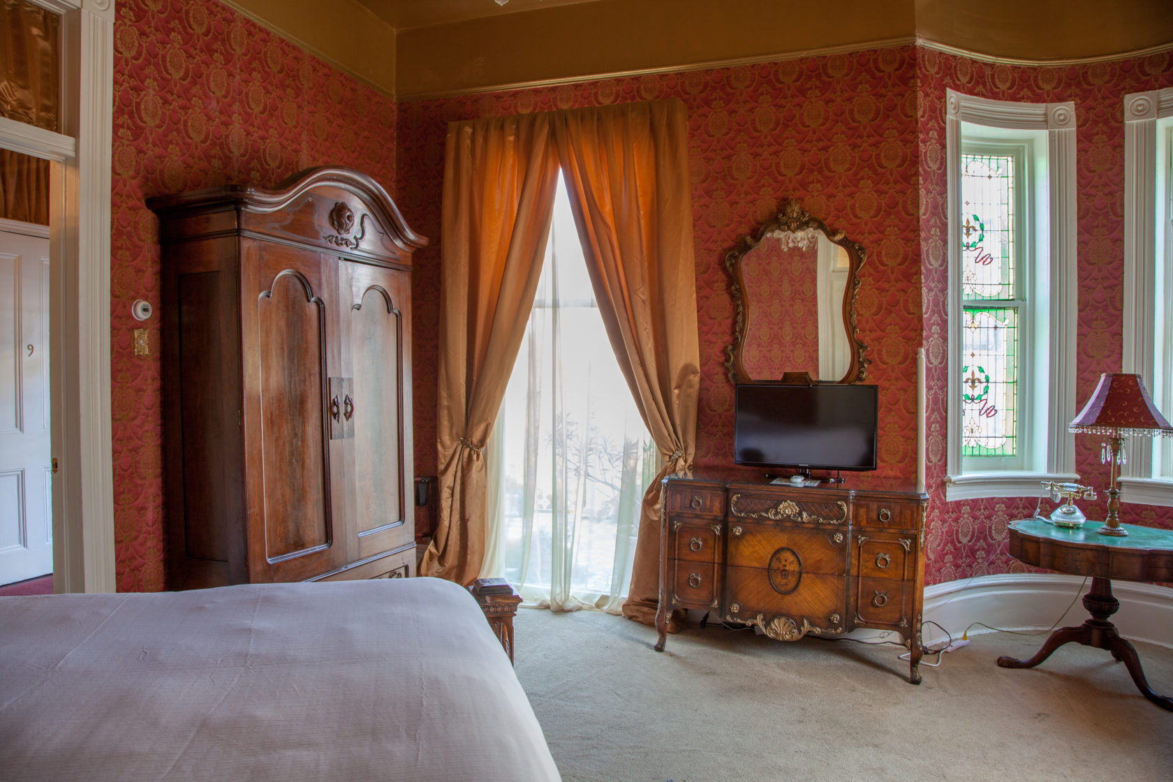 Spacious, exquisitely unique Victorian style room on the second floor, double occupancy with 1 queen sized bed, Old World charm with luxurious 14 foot gold leaf ceiling, chandelier, fireplace, free internet access, private bath. Note: Even though this room does not have a balcony, all guests can use the common balcony, on the second floor, overlooking Royal St.